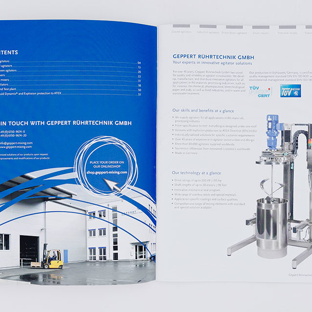 Geppert Rührtechnik Imagebroschüre Geppert Rührtechnik hat eine 20-seitige Imagebroschüre in neuem Design bekommen. Category: GrafikdesignProject navigationZurückPrevious project:Invent ImageredesignNächstesNext project:Rauh Erodiertechnik Web- und Imagedesign